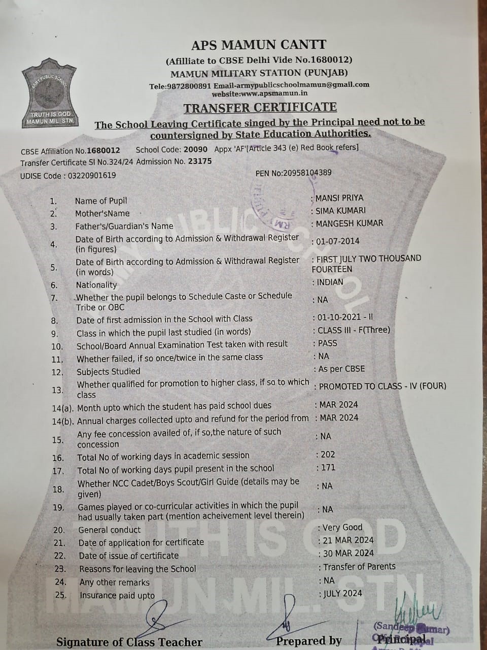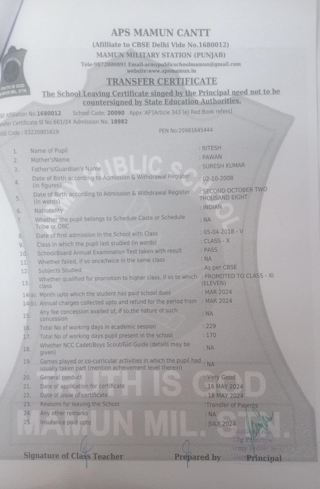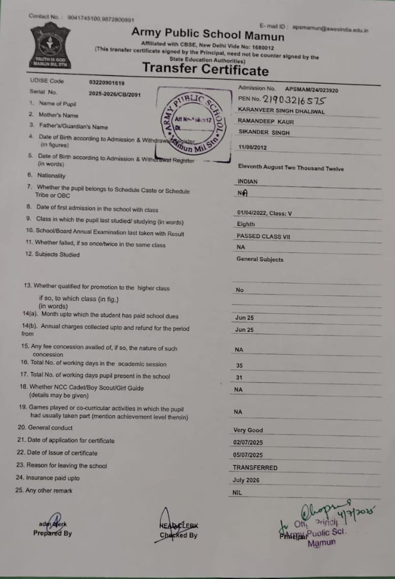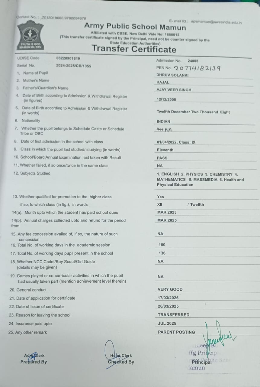 9872800891(Reception) , 9041745100(Principal)