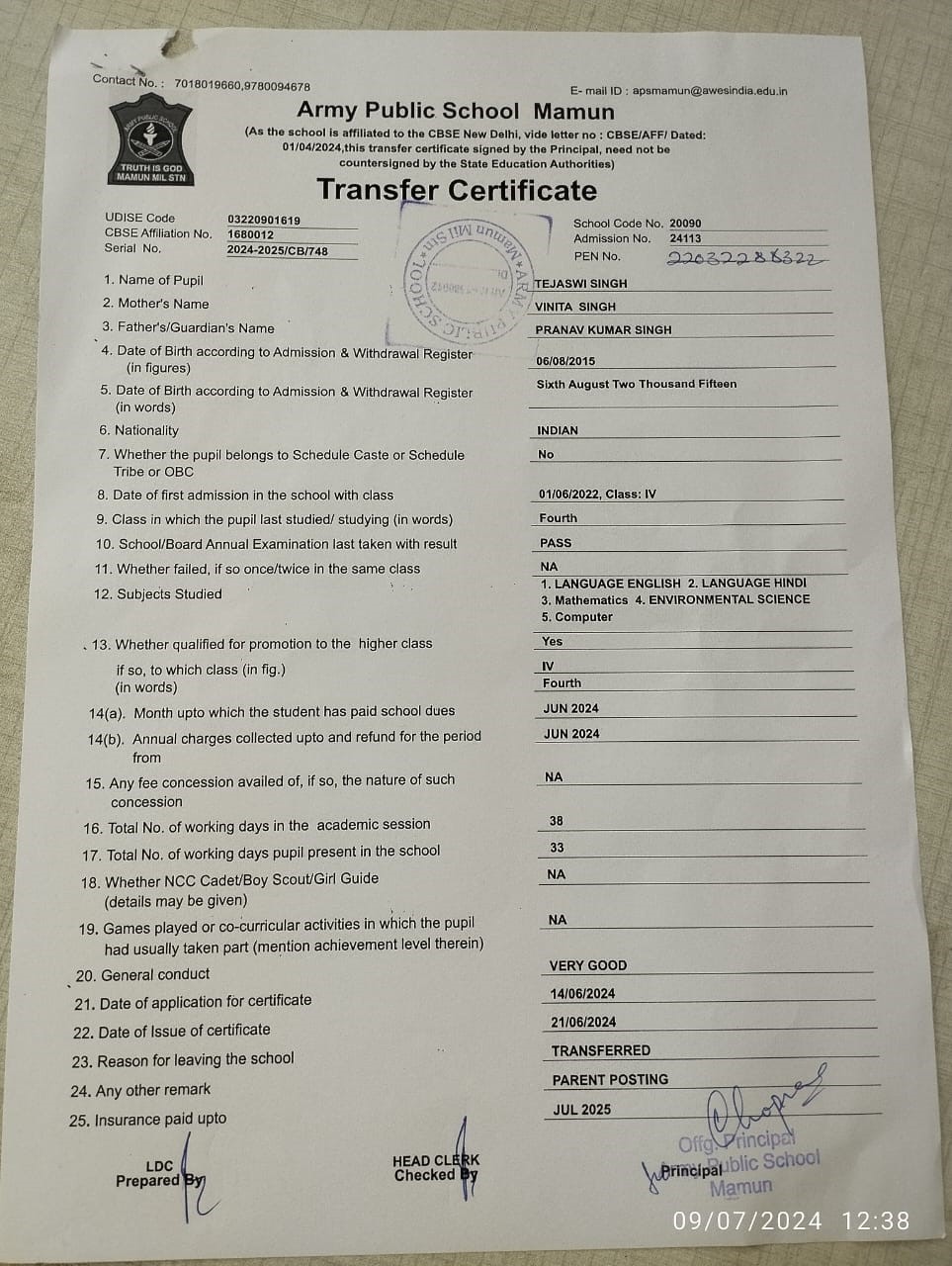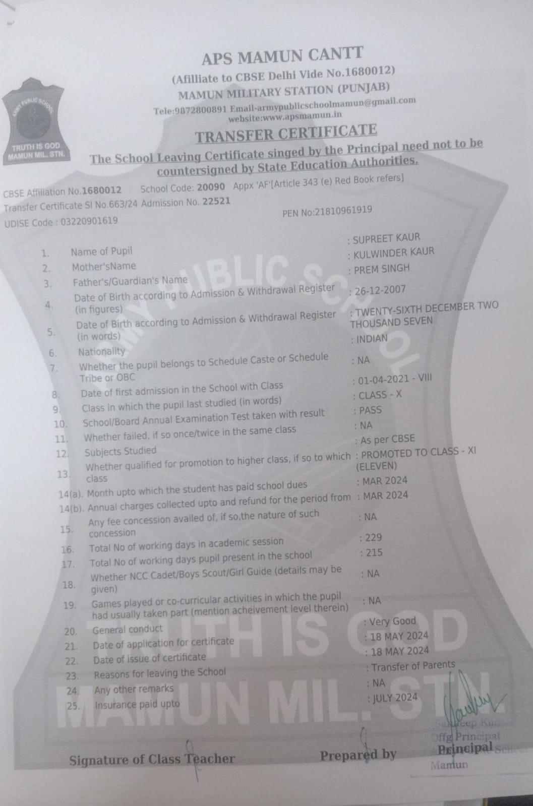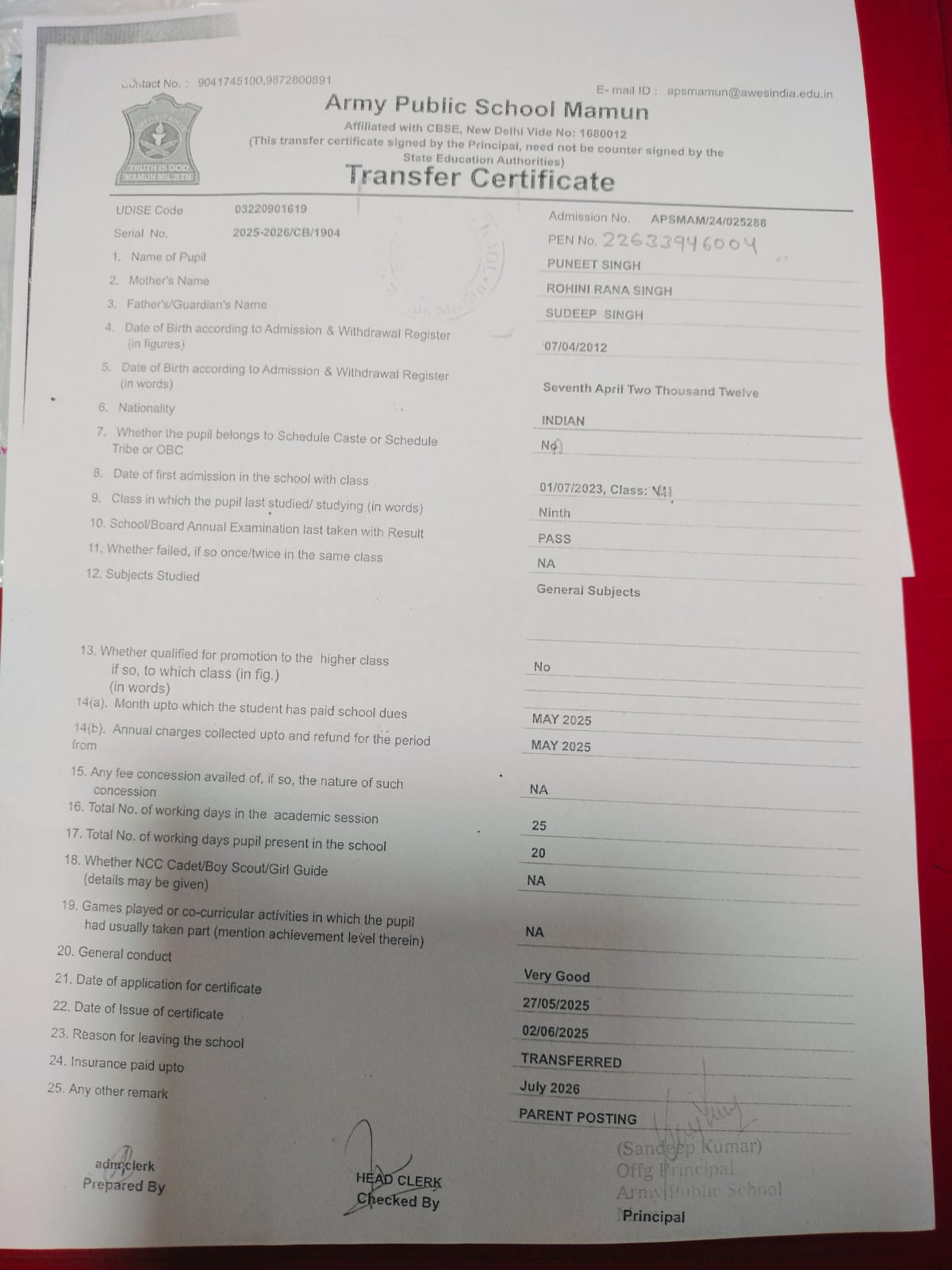 9872800891(Reception) , 9041745100(Principal)